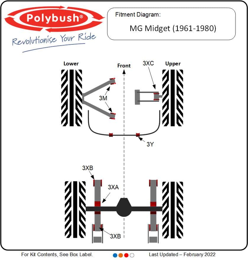 Upgrade your MG Midget (1961–1980) with high-quality polyurethane suspension bushes from Polybush. Designed to replace worn rubber components, our bushes restore performance and comfort across both front and rear suspension setups.