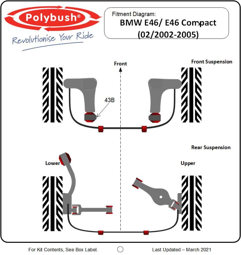 The Dynamic grade bushes offer a middle ground between Comfort and Performance. They are slightly firmer than the Comfort bushes, which improves handling and cornering response without sacrificing too much ride comfort. These bushes are ideal for drivers who enjoy a more engaging driving experience while still needing a level of comfort for daily use, whilst also being suitable for spirited driving & light track use.