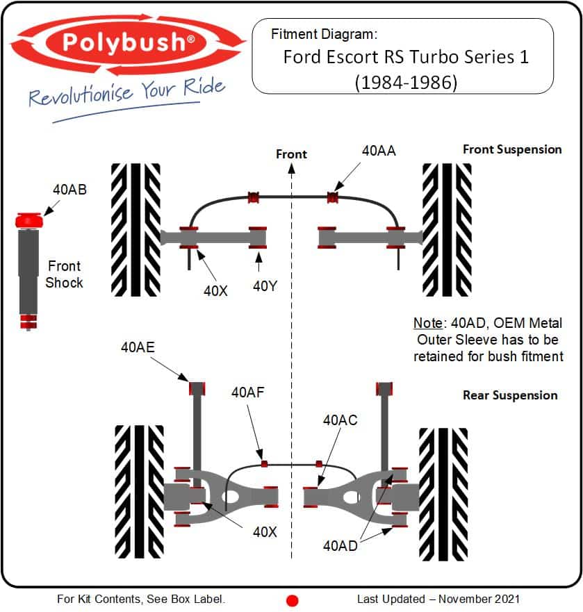 Bring back the razor-sharp response of the iconic Ford Escort RS Turbo Series 1 with Polybush polyurethane suspension bushes. Designed specifically for the 1984–1986 model, these bushes eliminate excess movement in the suspension, delivering the tight, controlled feel the RS Turbo was built for.