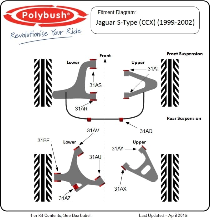 Our bushes are engineered for perfect fit and long-term durability. Ideal for daily drivers or enthusiasts preserving the iconic S-Type saloon, Polybush offers a reliable, maintenance-free solution to restore ride quality and confidence behind the wheel.