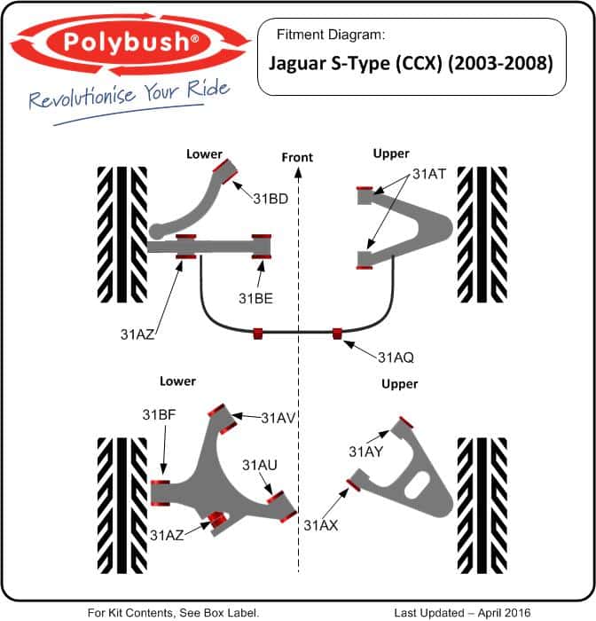 Enhance the driving experience of your Jaguar S-Type CCX (2003-2008) with Polybush polyurethane suspension bushes. Specifically designed to fit this later generation model, our bushes provide a superior alternative to factory rubber, offering better handling, improved steering response, and extended durability.