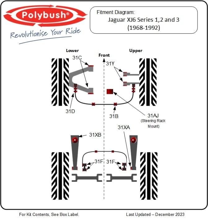 Each bush is designed to deliver a perfect fit and longer service life, making them the preferred choice for restorers and daily drivers. Don’t compromise on ride quality; choose Polybush for superior suspension performance on your XJ6.