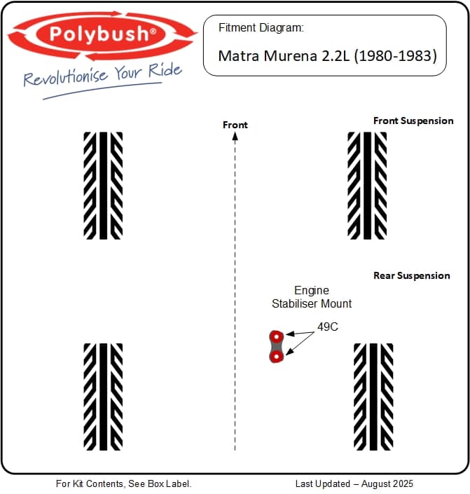 Enhance your Matra Murena’s unique handling with high-performance polyurethane suspension bushes from Polybush. Designed to outlast rubber and sharpen response, our bushes improve ride quality, reduce play, and preserve this rare mid-engined classic’s original charm. Perfect for road, rally or restoration, Polybush delivers comfort, control and longevity – all proudly made in the UK.