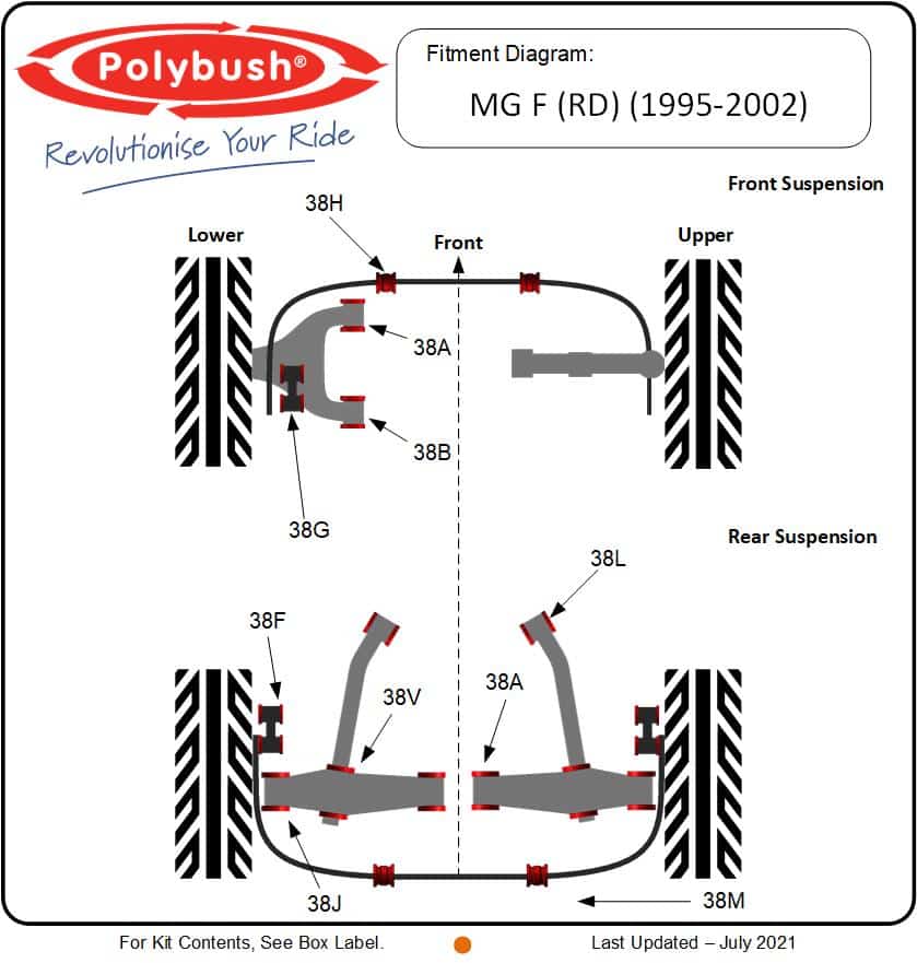 Upgrade your MG F (1995–2002) with precision-fit polyurethane suspension bushes from Polybush.