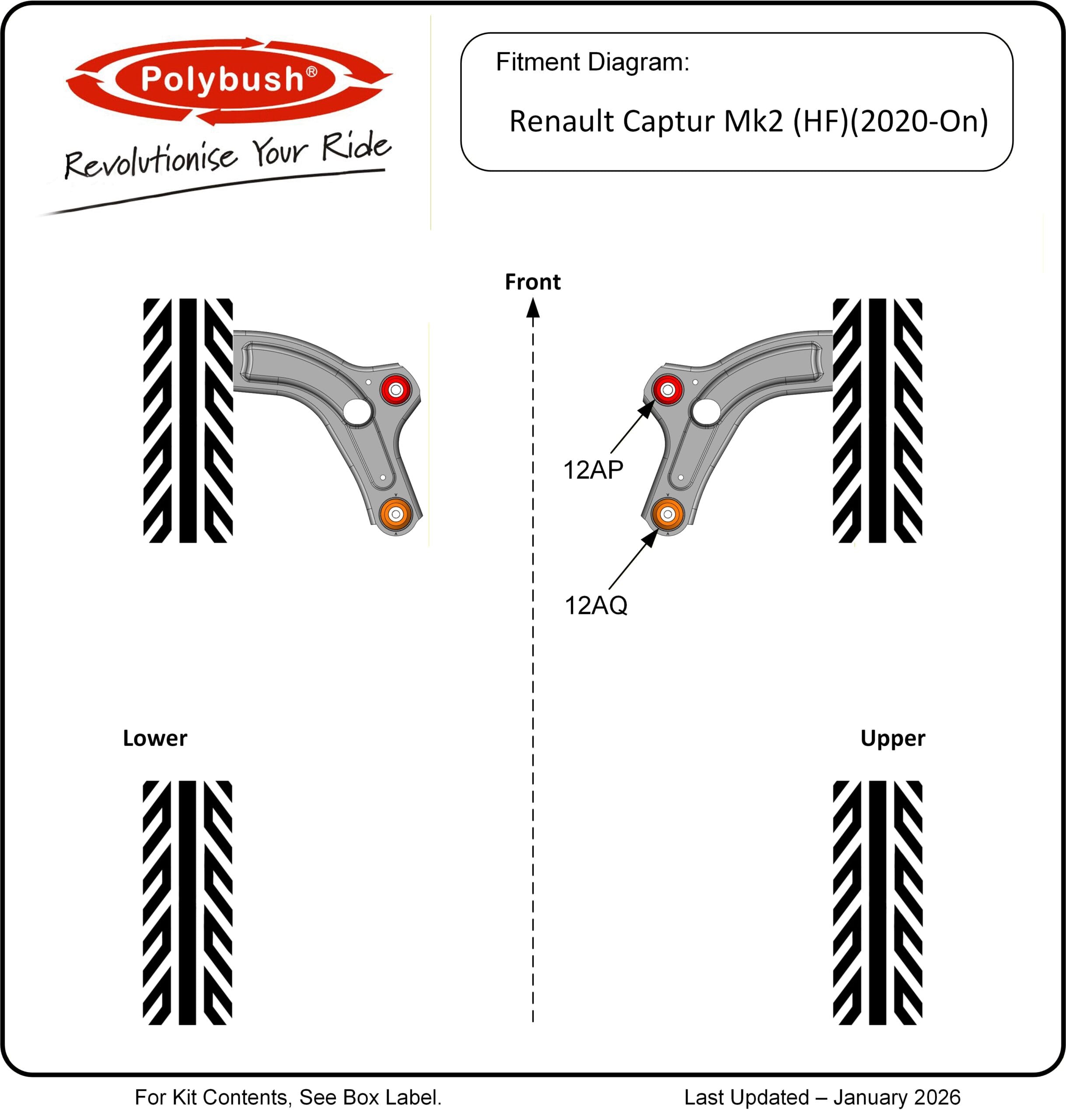Order the correct Renault Captur Mk2 (HF)(2020-On) vehicle sets (12AP & 12AQ) today to refresh handling, enhance precision and extend your vehicles suspension service life.