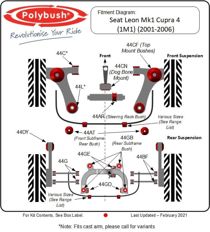 The Dynamic grade bushes offer a middle ground between Comfort and Performance. They are slightly firmer than the Comfort bushes, which improves handling and cornering response without sacrificing too much ride comfort. These bushes are ideal for drivers who enjoy a more engaging driving experience while still needing a level of comfort for daily use, whilst also being suitable for spirited driving & light track use.