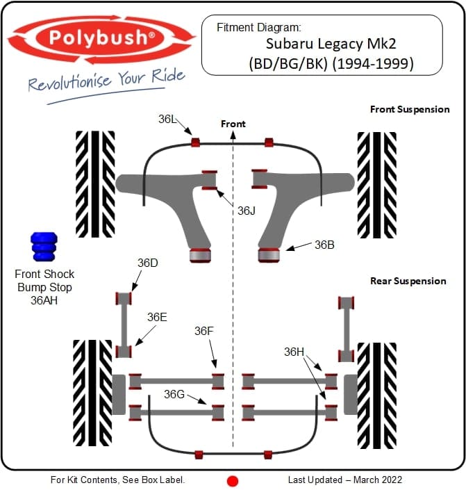 The Dynamic grade bushes offer a middle ground between Comfort and Performance. They are slightly firmer than the Comfort bushes, which improves handling and cornering response without sacrificing too much ride comfort. These bushes are ideal for drivers who enjoy a more engaging driving experience while still needing a level of comfort for daily use, whilst also being suitable for spirited driving & light track use.