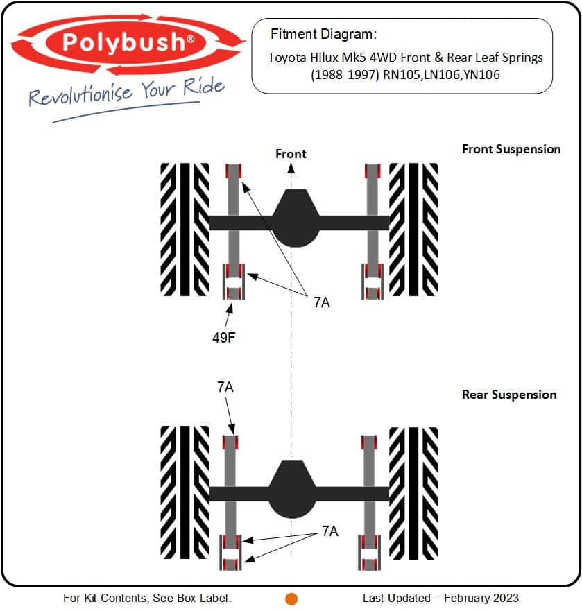 Performance grade bushes are the stiffest of the three, designed for enthusiasts who demand the utmost in handling and control. They offer minimal deflection, enhancing vehicle response and stability during aggressive driving. These bushes are perfect for high-performance or track vehicles where precision and handling are critical. While they might sacrifice some ride comfort, they deliver superior driving dynamics and control, ideal for those who push their vehicle to its limits – Including Towing!