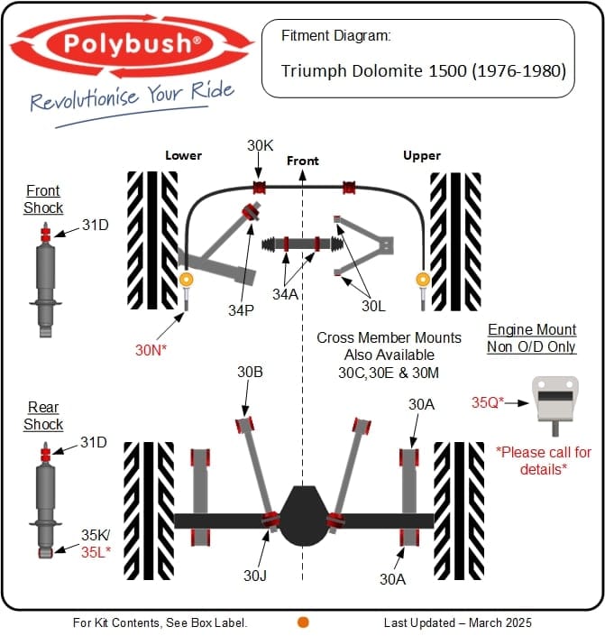 Performance grade bushes are the stiffest of the three, designed for enthusiasts who demand the utmost in handling and control. They offer minimal deflection, enhancing vehicle response and stability during aggressive driving. These bushes are perfect for high-performance or track vehicles where precision and handling are critical. While they might sacrifice some ride comfort, they deliver superior driving dynamics and control, ideal for those who push their vehicle to its limits – Including Towing!