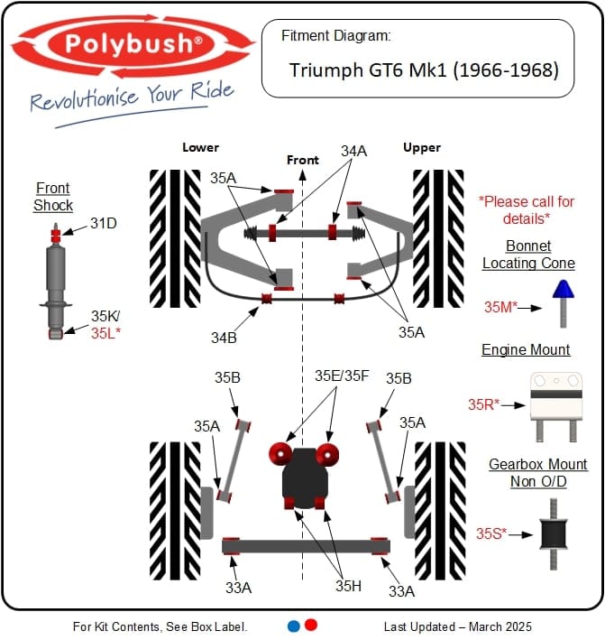 The Dynamic grade bushes offer a middle ground between Comfort and Performance. They are slightly firmer than the Comfort bushes, which improves handling and cornering response without sacrificing too much ride comfort. These bushes are ideal for drivers who enjoy a more engaging driving experience while still needing a level of comfort for daily use, whilst also being suitable for spirited driving & light track use.