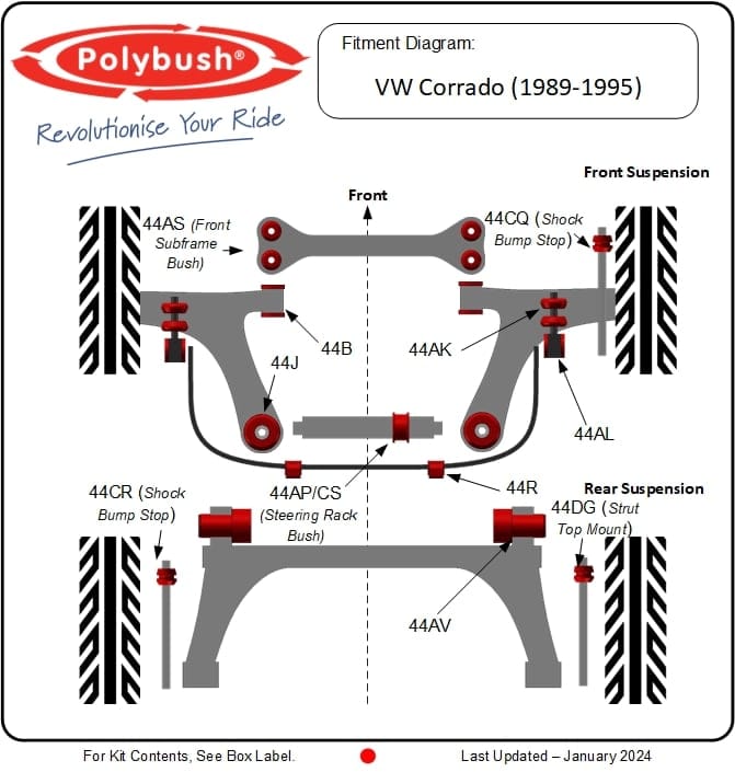 Perfect for all VW Corrado variants from 1988 to 1995, this upgrade ensures your suspension performs at its best for longer. Rediscover confident handling and a more responsive drive with Polybush.
